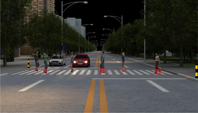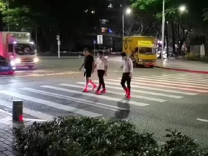 當行人即將進入斑馬線的瞬間,該設備探測到行人并投射28條紅色激光線到行人小腿處,形成“紅靴子”投影,這樣即使機動車駕駛員在遠處也能得到警示,做到及時避讓前方行人。