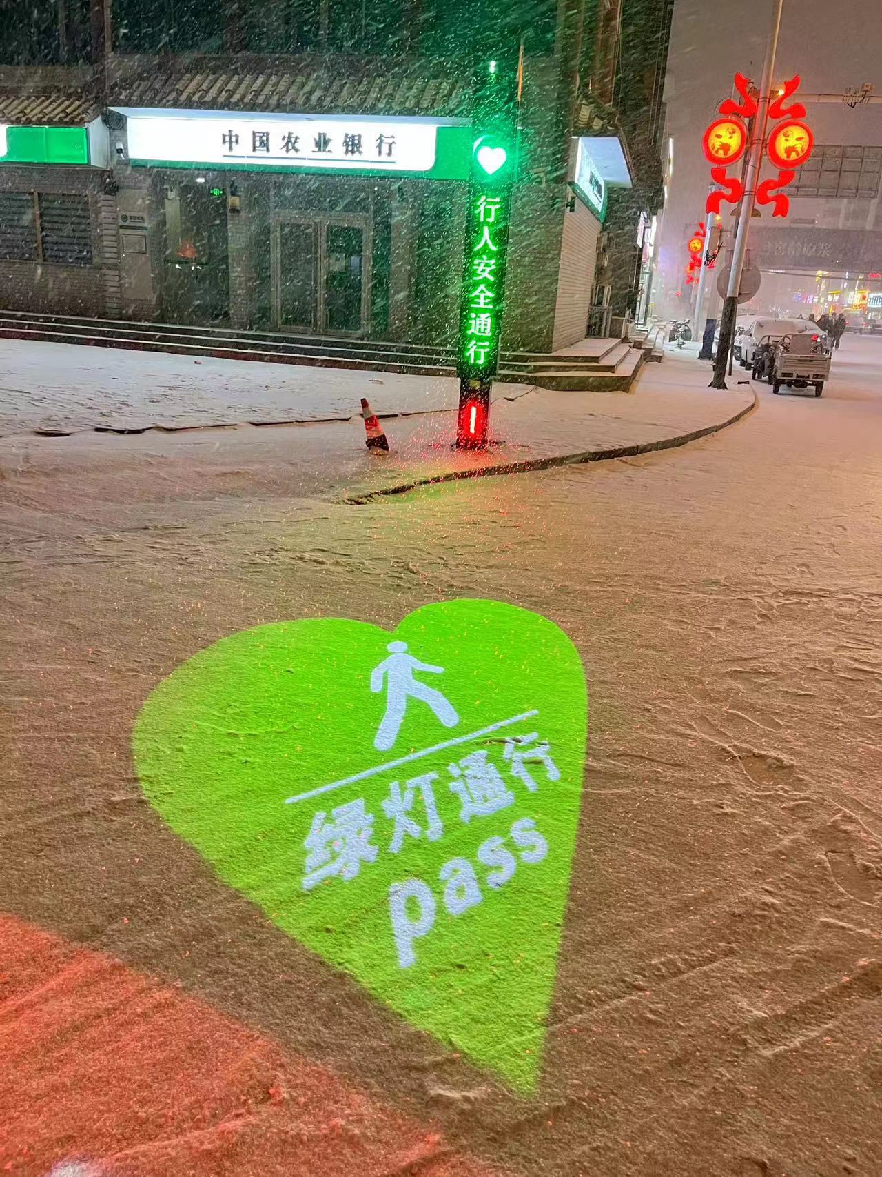 色溫8500K,跟隨愛心信號燈燈色。夜間時,在人行橫道上投影出精美醒目的圖案,提醒行人遵守交通規(guī)則,文明出行。