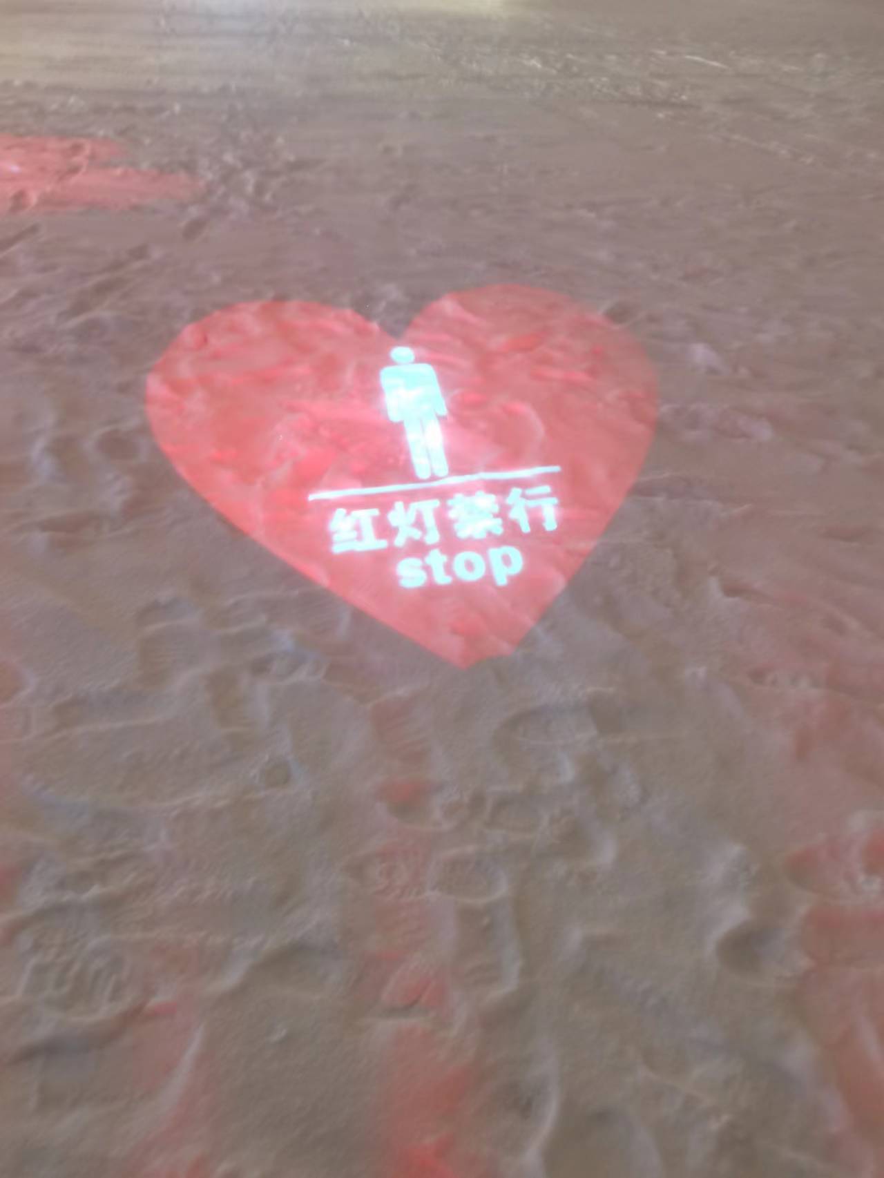 在愛心信號燈綠燈工作時,設備投射28條紅色激光線到過街行人小腿處,形成紅色區(qū)域投影,提示機動車駕駛員遠距離得到紅色警示和發(fā)現(xiàn)行人動態(tài),并及時做出反應;同時紅色光線引起行人注意,能夠警醒“低頭族”注意過街安全,從而減少交通意外的發(fā)生
